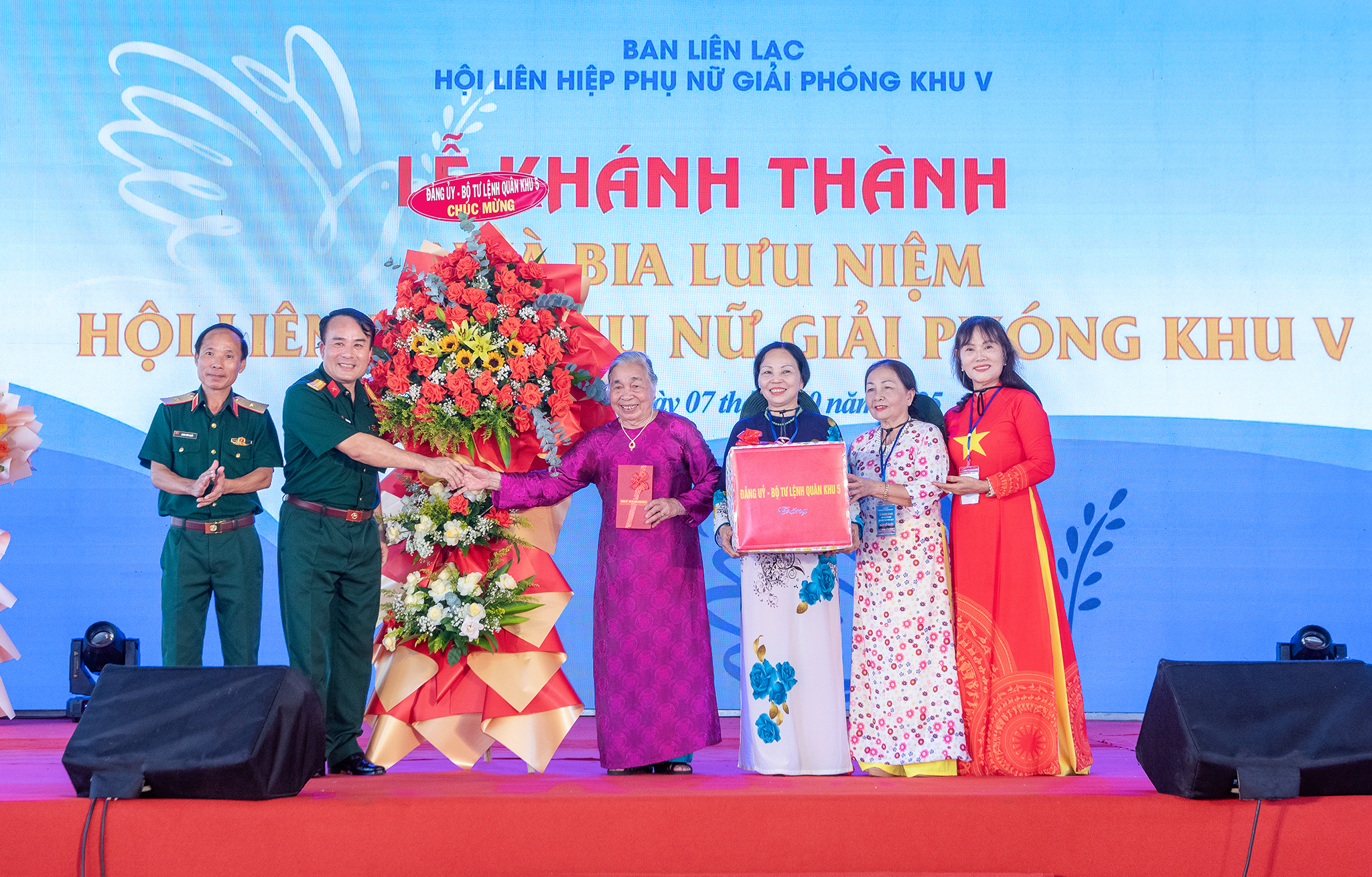 Phát biểu tại buổi lễ, Anh hùng lực lượng vũ trang Nhân dân, Trưởng Ban Liên lạc Hội LHPN Giải phóng Khu V Hồ Thị Kim Thanh cho biết: Hội Liên hiệp Phụ nữ Giải phóng Khu V được thành lập vào tháng 3-1961. Trong kháng chiến chống Mỹ, dưới sự lãnh đạo của Khu ủy Khu V, Hội đã làm tốt vai trò tập hợp phụ nữ các tỉnh thuộc Khu 5 đoàn kết trên mặt trận giải phóng dân tộc, thống nhất đất nước; tổ chức xây dựng Hội phụ nữ giải phóng ở cả ba vùng: căn cứ cách mạng, đồng bằng, trong vùng địch; thực hiện tốt nhiệm vụ đấu tranh chính trị, binh vận, tham gia đấu tranh vũ trang, thi đua sản xuất phục vụ tiền tuyến.