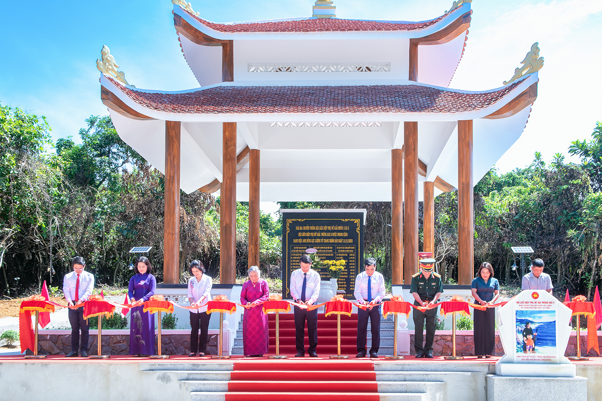 Cắt băng khánh thành Nhà bia lưu niệm Hội LHPN Giải phóng Khu V. Ảnh: Trần Văn Luận