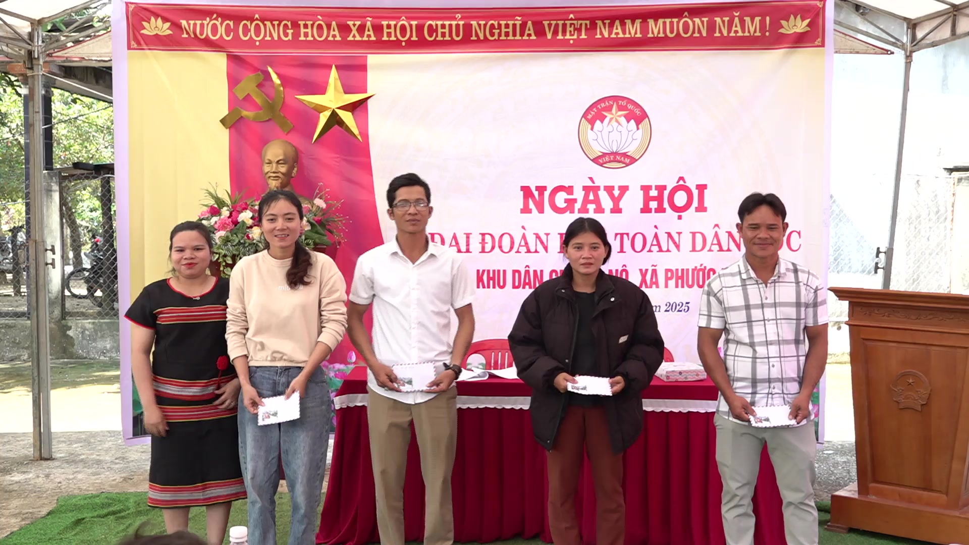 Dịp này, đồng chí Nguyễn Văn Nam - Bí thư Đảng ủy, Chủ tịch HĐND xã và đồng chí Đặng Thị Ngọc Lan - UVBTV Đảng ủy, Chủ tịch UBMTTQVN xã tặng quà cho khu dân cư và trao quà của Thường trực HĐND thành phố cho 8 hộ gia đình có hoàn cảnh khó khăn. Khu dân cư khen thưởng cho 2 tập thể và 2 cá nhân có thành tích xuất sắc trong năm 2025.