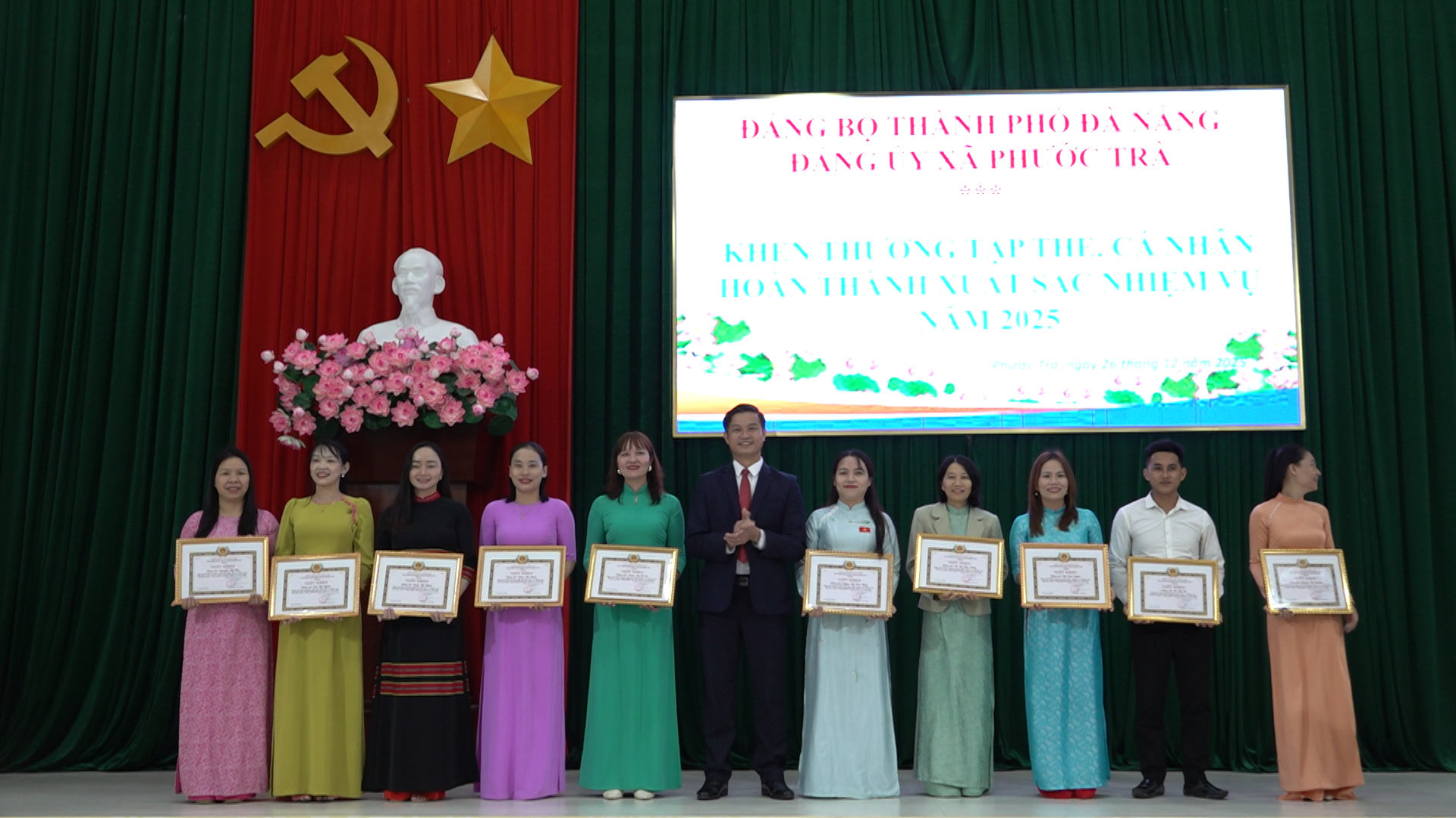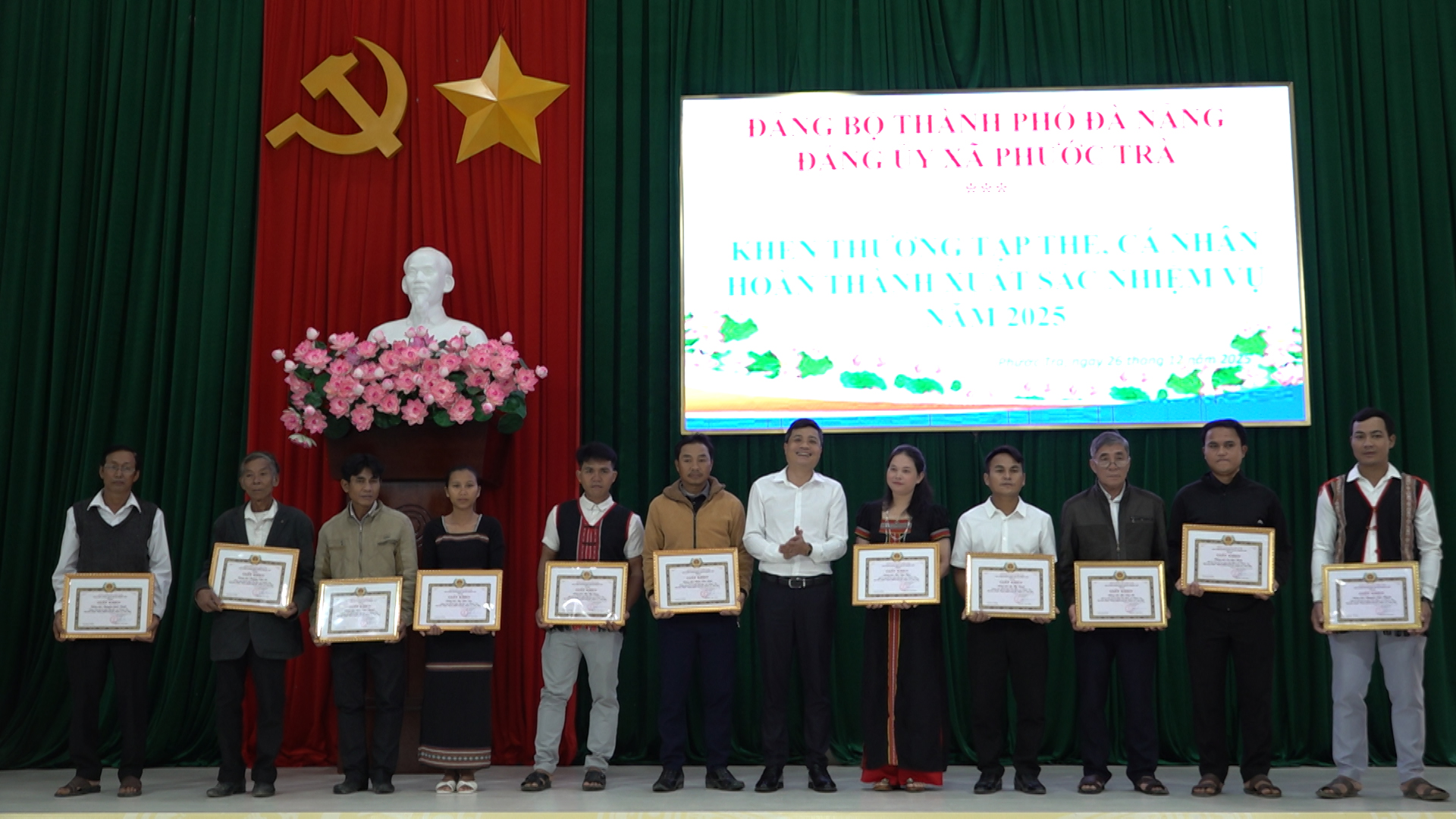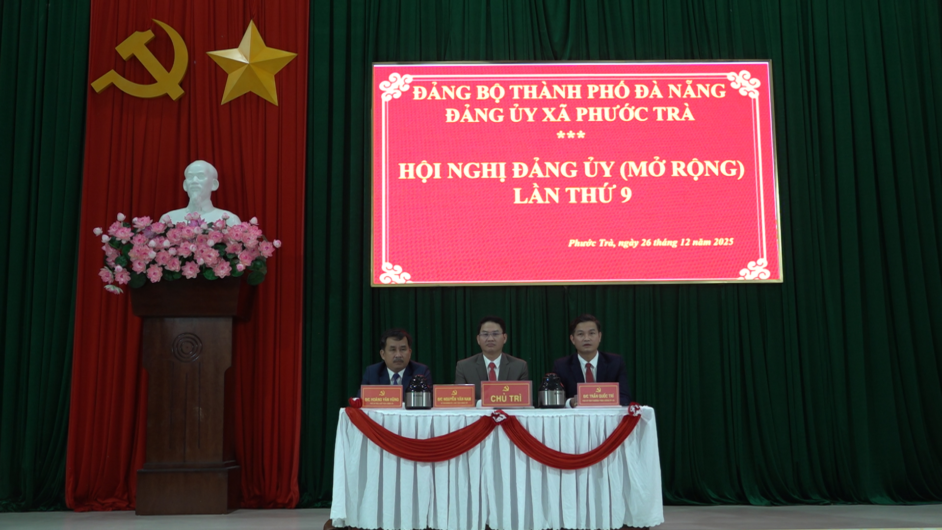 Đồng chí Nguyễn Văn Nam - Bí thư Đảng ủy, Chủ tịch HĐND xã; đồng chí Trần Quốc Trí - Phó Bí thư Thường trực Đảng ủy xã và đồng chí Hoàng Văn Hùng - Phó Bí thư Đảng ủy, Chủ tịch UBND xã đồng chủ trì hội nghị. Cùng dự có các đồng chí Ban thường vụ Đảng ủy, Ban Chấp hành Đảng bộ xã, lãnh đạo các ban, ngành, đoàn thể; Bí thư, Trưởng thôn, Trưởng ban Công tác Mặt trận thôn và tập thể, cá nhân được khen thưởng.