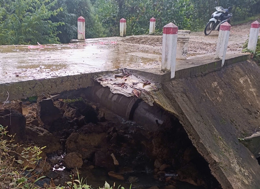 Cùng ngày, đồng chí Chủ tịch UBND xã cũng đến kiểm tra ngầm cầu vào khu nghĩa trang Trà Va. Hiện công trình bị cuốn trôi đường dẫn dài hơn 5m, tạo độ sâu trên 3m, tiềm ẩn nguy cơ mất an toàn giao thông cho người dân. Đồng chí giao Phòng Kinh tế phối hợp đơn vị tư vấn lập dự toán, đề xuất xử lý khẩn cấp, sớm khắc phục để đảm bảo an toàn cho người dân khi lưu thông.