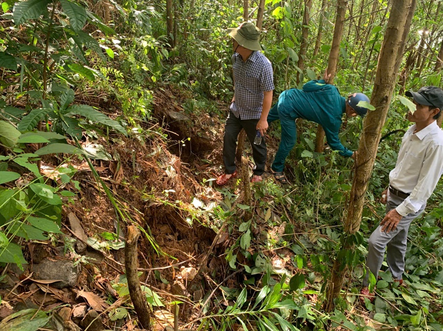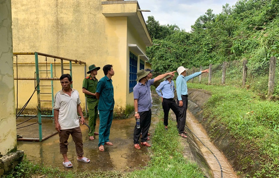 Qua kiểm tra, đoàn công tác phát hiện quả đồi ông Dư phía sau trường có hai vết nứt lớn dài từ 2m đến 20m, có dòng chảy ngầm tràn ra sân trường, tiềm ẩn nguy cơ sạt lở cao. Quả đồi có diện tích hơn 5 héc-ta đất.