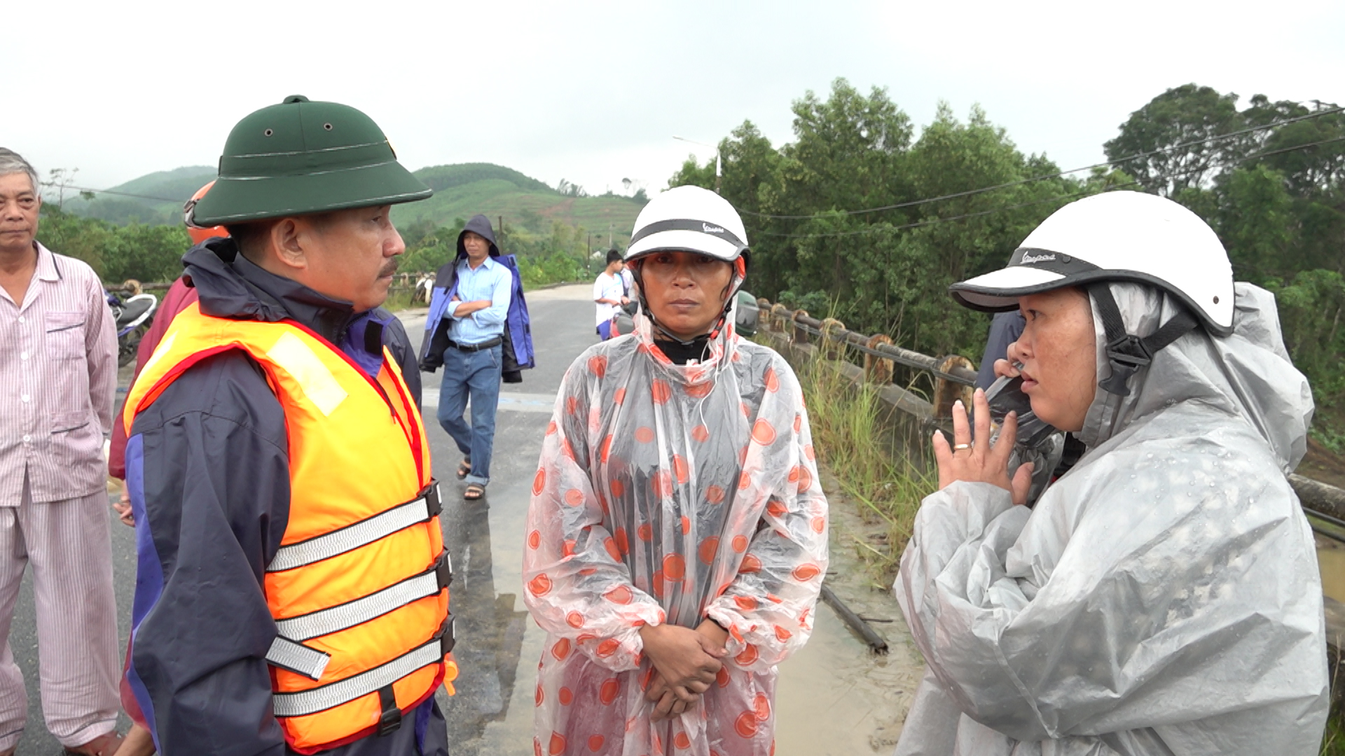 Đồng chí Hoàng Văn Hùng - Phó Bí thư Đảng ủy, Chủ tịch UBND xã Phước Trà đến tại hiện trường chỉ đạo tìm kiếm người dân bị nước cuốn trôi