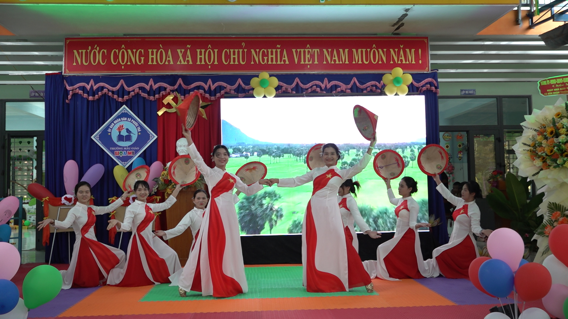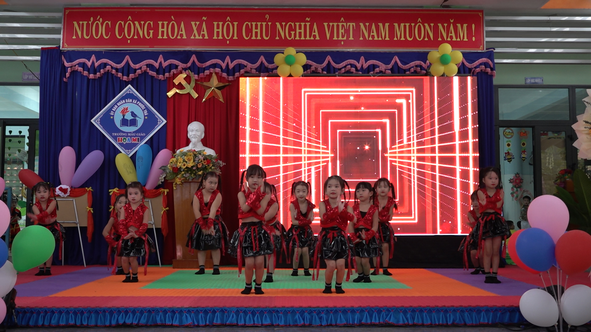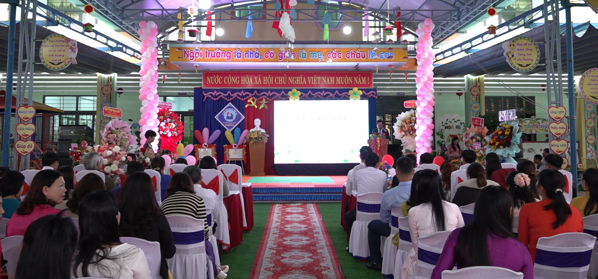 Phát biểu tại buổi lễ, đồng chí Hoàng Văn Hùng - Phó Bí thư Đảng ủy, Chủ tịch UBND xã gửi lời chúc mừng và đánh giá cao sự cố gắng của tập thể nhà trường. Đồng thời, định hướng một số nhiệm vụ trong thời gian tới đó là: tiếp tục nâng cao chất lượng chăm sóc - giáo dục trẻ, đổi mới phương pháp dạy học, tăng cường phối hợp với phụ huynh, giữ vững và phát huy danh hiệu trường chuẩn.