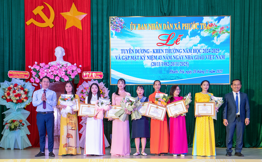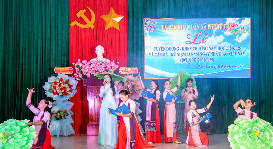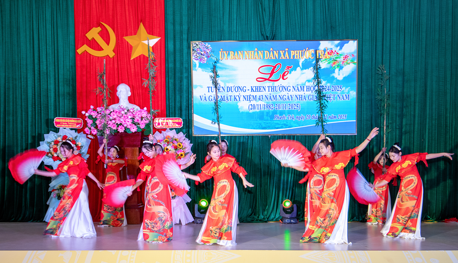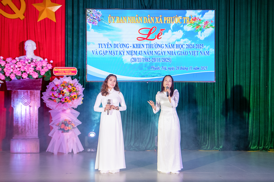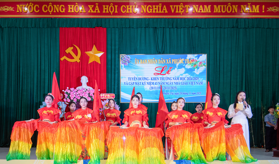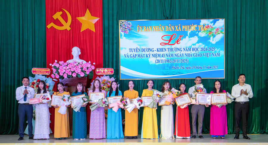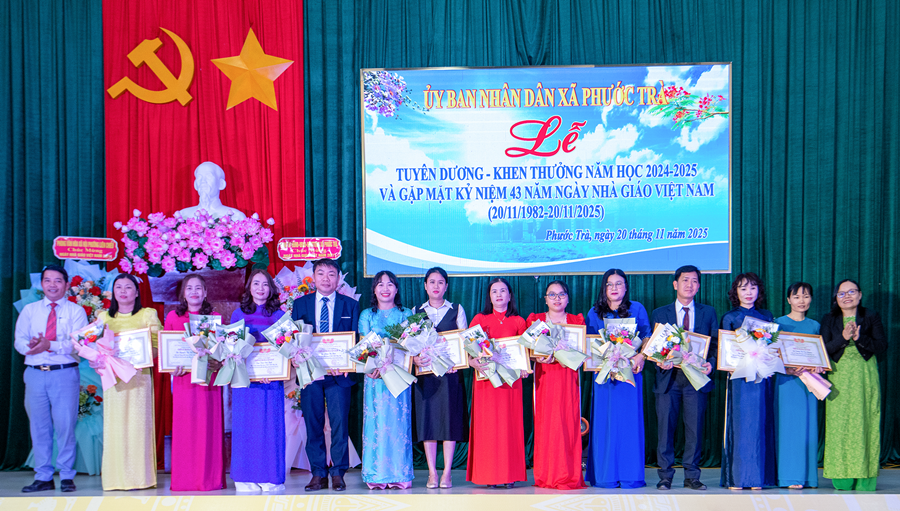Tại buổi lễ, đồng chí Hoàng Văn Hùng - Chủ tịch UBND xã đã ôn lại truyền thống 43 năm Ngày Nhà giáo Việt Nam 20/11. Đồng thời, khẳng định vai trò đặc biệt quan trọng của giáo dục trong chiến lược phát triển con người và tương lai địa phương. Dẫn lại quan điểm của Đảng tại Nghị quyết 71 mới ban hành năm 2025, đồng chí nhấn mạnh: “Giáo dục là quốc sách hàng đầu - quyết định tương lai dân tộc”. Đây cũng là định hướng để Phước Trà tiếp tục ưu tiên nguồn lực, đầu tư đồng bộ cho giáo dục trong giai đoạn tới.