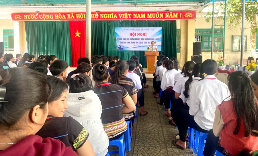Hội nghị cũng dành thời gian trao đổi, giải đáp thắc mắc để mỗi học sinh xác định đúng khả năng, đúng điều kiện gia đình, từ đó đưa ra lựa chọn phù hợp: học THPT, học nghề hay tham gia mô hình vừa học văn hóa vừa học nghề ngay tại địa phương.