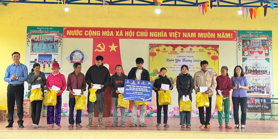 Đồng chí Nguyễn Thành Liêm - UVBTV, Phó Chủ tịch UBND xã cảm ơn sự quan tâm, đồng hành và tấm lòng nhân ái của các đoàn và các doanh nghiệp đã hướng về cơ sở tổ chức chương trình thiện nguyện đầy ý nghĩa mang tên “Xuân Yêu Thương 2026”. Bên cạnh, cho biết Phước Trà là địa bàn còn nhiều khó khăn, đời sống của một bộ phận nhân dân và điều kiện học tập của các em học sinh vẫn còn thiếu thốn. Đặc biệt, trong thời gian qua, địa phương vừa chịu ảnh hưởng của mưa lũ, gây không ít khó khăn cho bà con nhân dân. Chính vì vậy, những phần quà thiết thực hôm nay như bàn ghế học sinh, vở học tập và các suất quà Tết dành cho các hộ khó khăn thực sự là nguồn động viên rất lớn, không chỉ về vật chất mà còn là sự sẻ chia ấm áp về tinh thần.