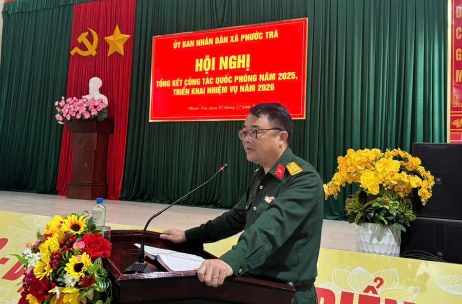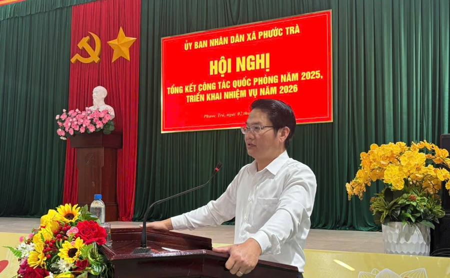 Ban Chỉ huy quân sự xã thông qua dự thảo báo cáo tổng kết nhiệm vụ quốc phòng, quân sự địa phương năm 2025 và phương hướng nhiệm vụ năm 2026. Năm 2025, dưới sự lãnh đạo sâu sát của Đảng ủy, UBND, Ban Chỉ huy PTKV 3 - Trà My, nhiệm vụ quốc phòng, quân sự địa phương của xã Phước Trà được triển khai nghiêm túc, đồng bộ và hiệu quả, góp phần giữ vững ổn định chính trị, trật tự an toàn xã hội và tạo điều kiện phát triển kinh tế - xã hội địa phương.