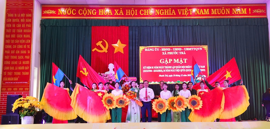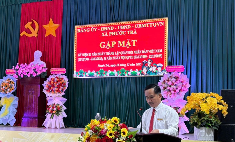Diễn văn tại buổi lễ kỷ niệm do đồng chí Hoàng Văn Hùng - Phó Bí thư Đảng ủy, Chủ tịch UBND trình bày khẳng định: cách đây 81 năm, ngày 22/12/1944, Đội Việt Nam Tuyên truyền Giải phóng quân - tiền thân của Quân đội nhân dân Việt Nam - được thành lập, đánh dấu bước ngoặt quan trọng trong lịch sử cách mạng Việt Nam. Trải qua hơn tám thập kỷ xây dựng, chiến đấu và trưởng thành, Quân đội nhân dân Việt Nam luôn tuyệt đối trung thành với Đảng, Tổ quốc và Nhân dân; là lực lượng nòng cốt trong sự nghiệp đấu tranh giải phóng dân tộc, bảo vệ vững chắc độc lập, chủ quyền và toàn vẹn lãnh thổ của đất nước. Kế thừa và phát huy truyền thống cách mạng vẻ vang, lực lượng vũ trang và Nhân dân xã Phước Trà đã đoàn kết, vượt qua nhiều khó khăn, tích cực tham gia phát triển kinh tế - xã hội, củng cố quốc phòng - an ninh, giữ vững ổn định chính trị, trật tự an toàn xã hội trên địa bàn. Dù trong điều kiện sắp xếp đơn vị hành chính, vận hành mô hình chính quyền địa phương hai cấp, nhưng với tinh thần trách nhiệm cao, lực lượng vũ trang xã luôn hoàn thành tốt nhiệm vụ được giao, xứng đáng với niềm tin của cấp ủy, chính quyền và Nhân dân.