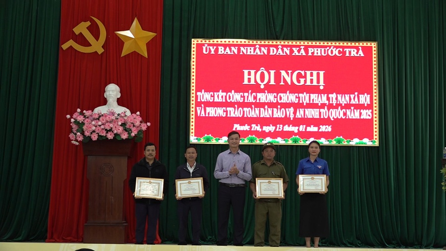 Nhân dịp này, UBND xã khen thưởng cho 4 tập thể và 8 cá nhân có thành tích xuất sắc trong phong trào Toàn dân bảo vệ an ninh Tổ quốc năm 2025; công nhận 8 khu dân cư, đơn vị trạm y tế xã và trường PTDTNT THCS Hiệp Đức đạt tiêu chuẩn an toàn về an ninh trật tự năm 2025.