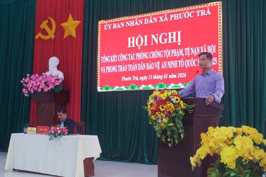 Phát biểu chỉ đạo tại hội nghị, đồng chí Trần Quốc Trí - Phó Bí thư Thường trực Đảng ủy xã ghi nhận, biểu dương những kết quả đạt được của UBND xã, lực lượng Công an và các ban, ngành, đoàn thể trong công tác bảo đảm an ninh, trật tự. Đồng chí đề nghị trong thời gian tới, các cơ quan, đơn vị tiếp tục phát huy tinh thần trách nhiệm, tăng cường phối hợp, đổi mới nội dung, hình thức tuyên truyền, vận động Nhân dân tích cực tham gia phong trào Toàn dân bảo vệ ANTQ; chủ động nắm chắc tình hình ngay từ cơ sở, không để bị động, bất ngờ trong mọi tình huống.