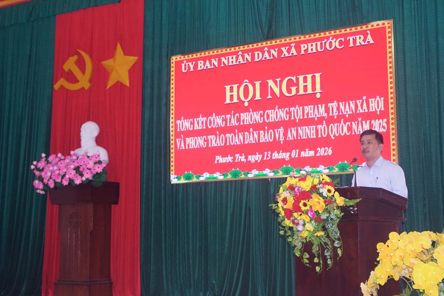 Tại hội nghị, các đại biểu đã được nghe lãnh đạo công an xã báo cáo tổng kết đánh giá toàn diện kết quả công tác phòng, chống tội phạm, tệ nạn xã hội và phong trào Toàn dân bảo vệ ANTQ năm 2025. Trong năm, xảy ra 01 vụ trộm cắp tài sản với 02 đối tượng và 01 vụ vi phạm quy định về an toàn thực phẩm, các vụ việc đều được phát hiện, xử lý đúng quy định pháp luật; không phát sinh tội phạm ma túy, tội phạm công nghệ cao, cờ bạc, mại dâm, tai nạn giao thông và cháy nổ.