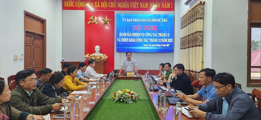 Chiều ngày 04/12/2025, UBND xã Phước Trà tổ chức Hội nghị đánh giá kết quả thực hiện nhiệm vụ tháng 11 và triển khai nhiệm vụ tháng 12 năm 2025. Đồng chí Hoàng Văn Hùng - Phó Bí thư Đảng ủy, Chủ tịch UBND xã chủ trì Hội nghị; Tham dự hội nghị có đồng chí Nguyễn Thành Liêm - UVBTV, Phó Chủ tịch UBND xã; Thủ trưởng các cơ quan, đơn vị xã, trường học, trạm y tế, trưởng thôn.